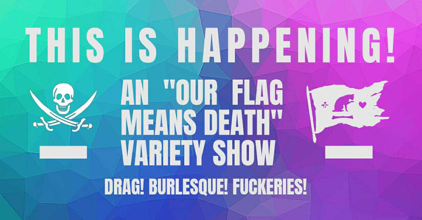 "This Is Happening! An Our Flag Means Death Variety Show" is a 21+ OFMD event happening at 7pm on March 3rd at Kremwerk's Cherry Room. This is a fan-run event and has NO association with ECCC, HBO's Our Flag Means Death, or any subsidiaries.